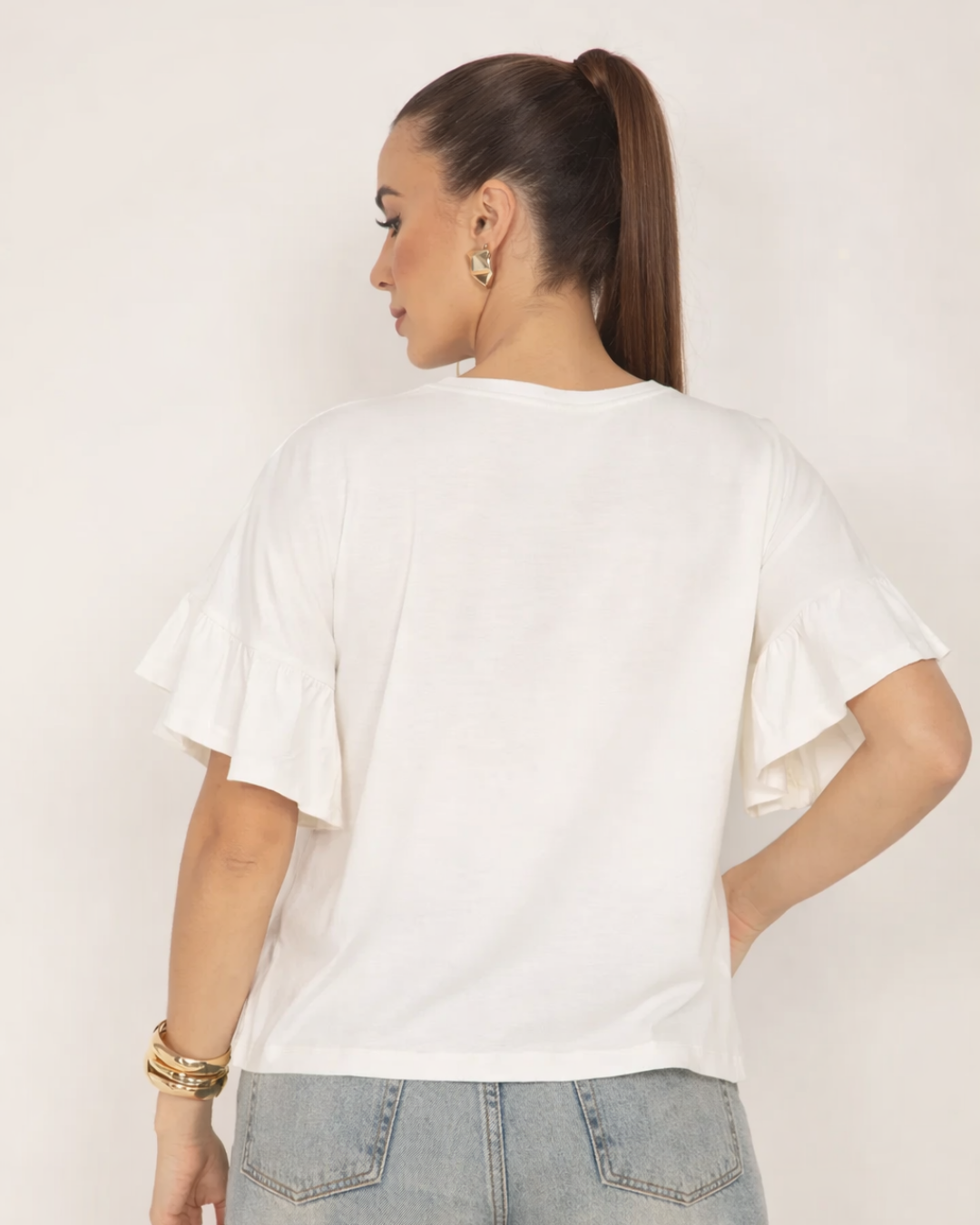 Os babados adicionam charme e movimento à peça, criando um efeito leve e elegante que se destaca tanto em produções casuais quanto em combinações mais refinadas. Versátil, pode ser usada com jeans para o dia a dia ou com saias e peças de alfaiataria para ocasiões especiais.