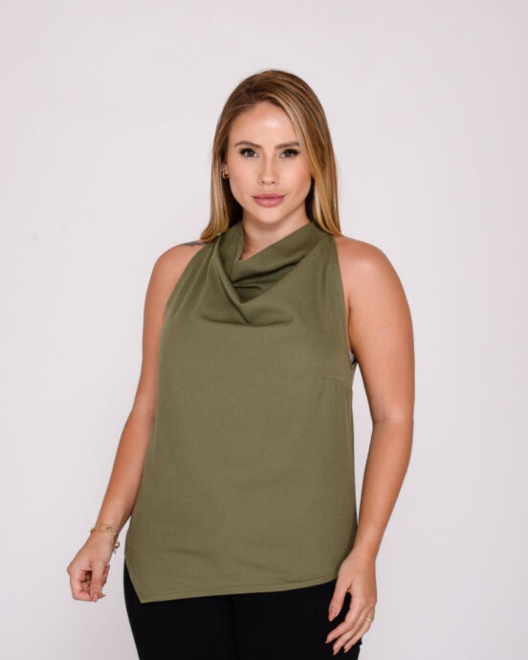 A Blusa Feminina Gola Boba Army Green é a escolha ideal para quem busca um visual elegante com personalidade. Com design sofisticado, a gola boba cria um caimento fluido que valoriza o colo e adiciona charme ao look.