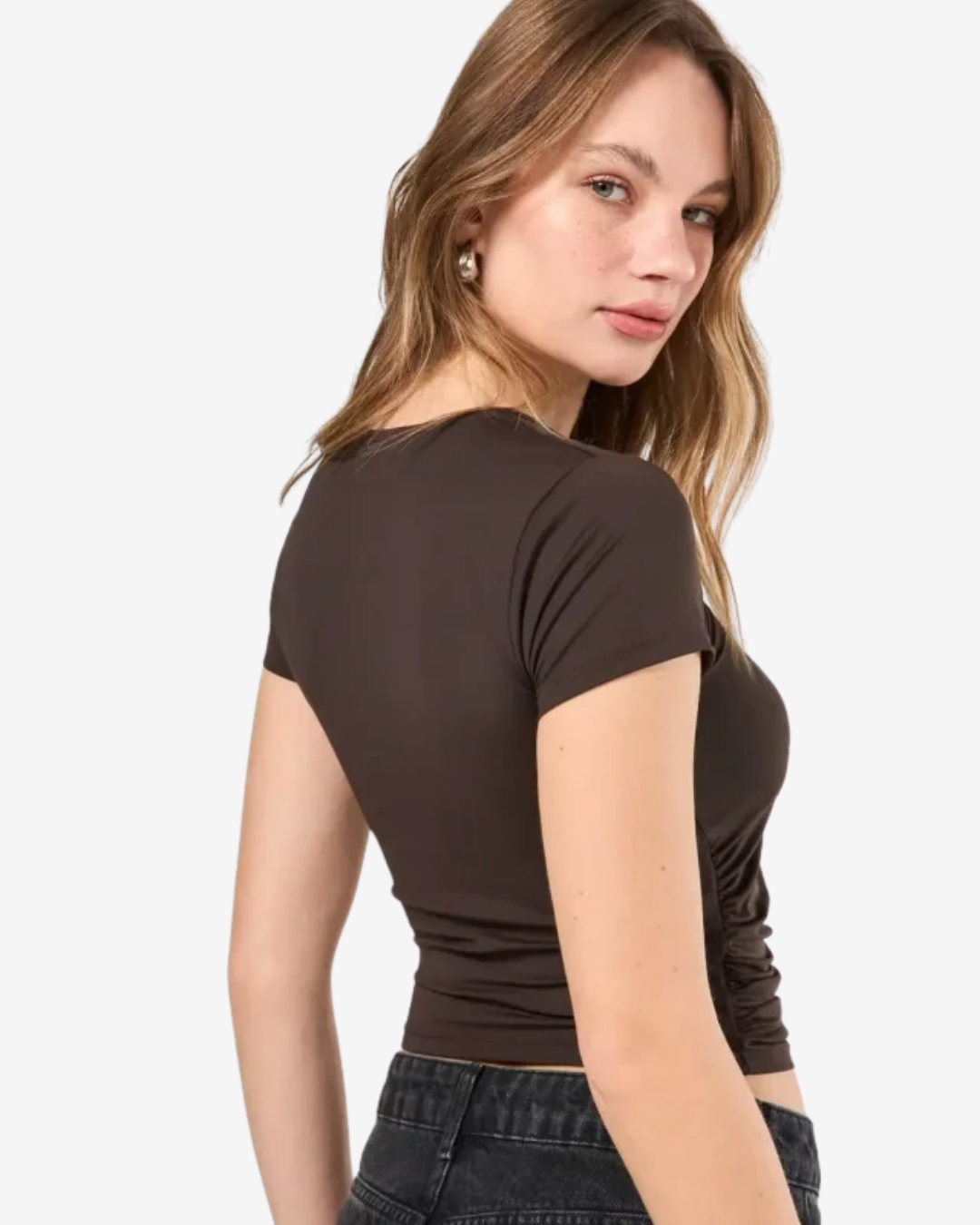 Com proposta funcional e estética essencial, esta blusa é uma escolha versátil para o guarda-roupa feminino. A milaa apresenta este modelo como uma peça básica que une conforto, qualidade e simplicidade em um design clássico.