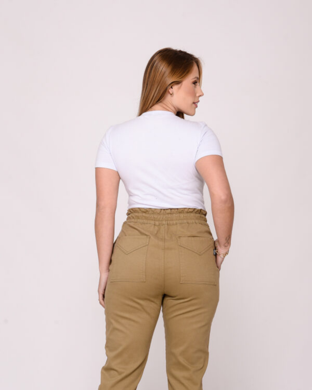 Confeccionada em sarja de alta qualidade, oferece toque macio, resistência e leve elasticidade, proporcionando conforto durante todo o dia. A cor bege, sofisticada e versátil, permite combinações que vão do casual ao social com facilidade.