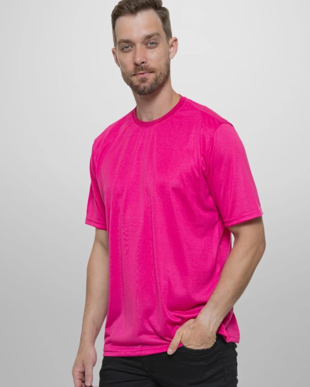 Confeccionada com tecido de alta qualidade, oferece toque macio, leveza e excelente respirabilidade, garantindo conforto ao longo do dia. A cor rosa shock adiciona um toque vibrante e atual, ideal para combinações criativas e estilosas.