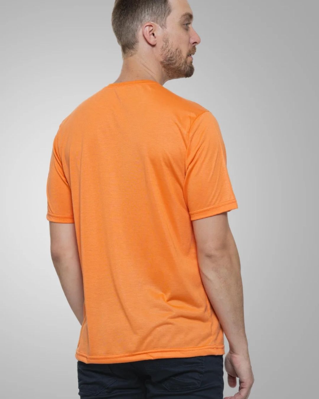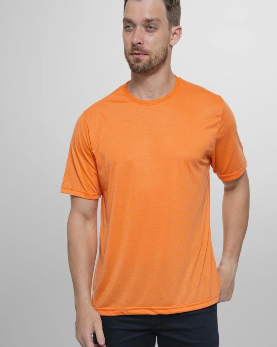 A Camiseta Masculina Clássica Laranja é ideal para quem busca um visual moderno, leve e cheio de personalidade. Com modelagem tradicional e caimento confortável, ela se adapta perfeitamente ao corpo, garantindo praticidade no dia a dia.