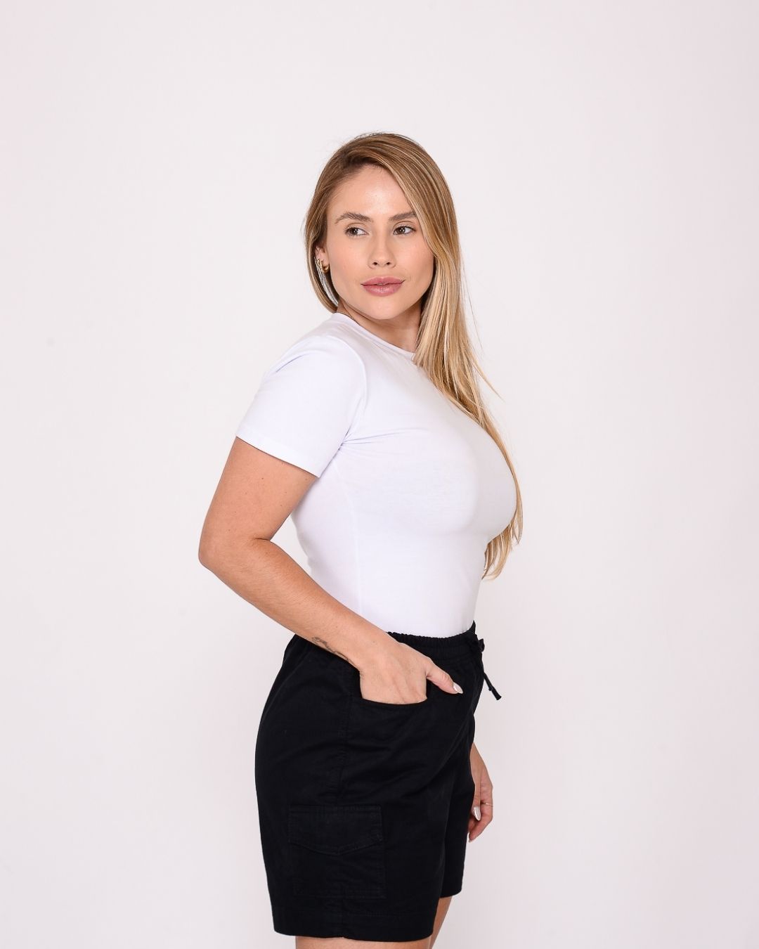 O Short Cargo Feminino Preto é a escolha ideal para quem busca praticidade aliada a um visual moderno e atemporal. Com design utilitário e bolsos funcionais, ele traz um toque urbano ao look, perfeito para o dia a dia.