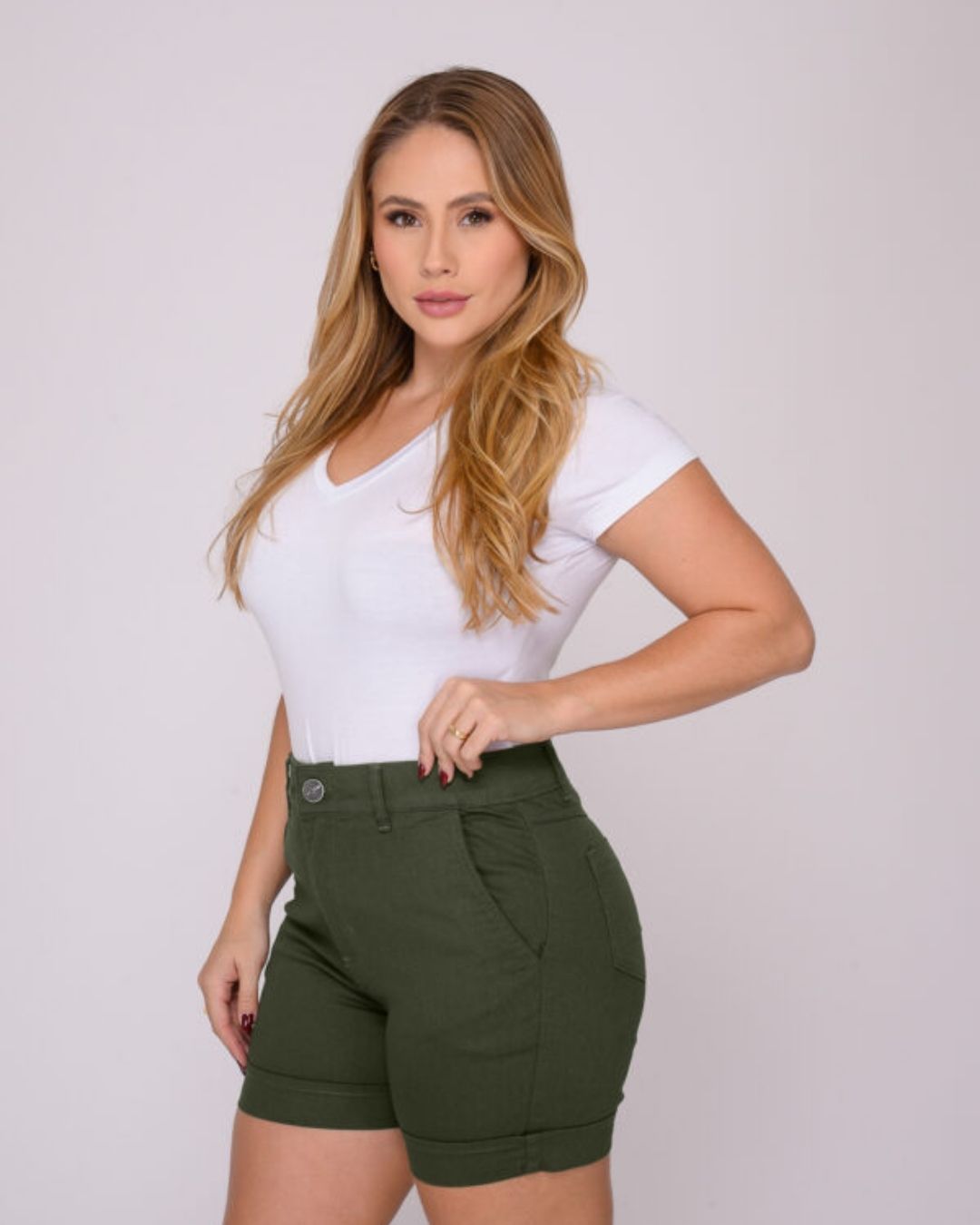 Shorts Feminino Cintura Média Verde Musgo